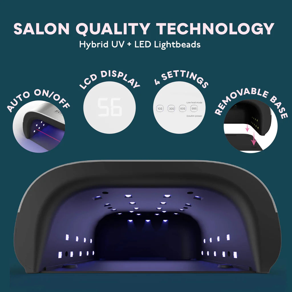 Mėgaukitės salono kokybės nagų priežiūra savo namuose su Sun3 UV LED nagų lempa. Ši 48 vatų lempa su 39 galingomis LED diodomis ir novatorišku „Double Power“ režimu užtikrina greitą ir efektyvų sukietėjimą, garantuodama nepriekaištingus rezultatus kiekvieną kartą. Valdykite savo nagų meno kelionę naudodami pritaikomas sukietėjimo parinktis ir ilgalaikį veikimą.