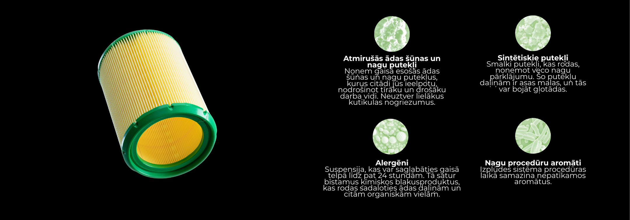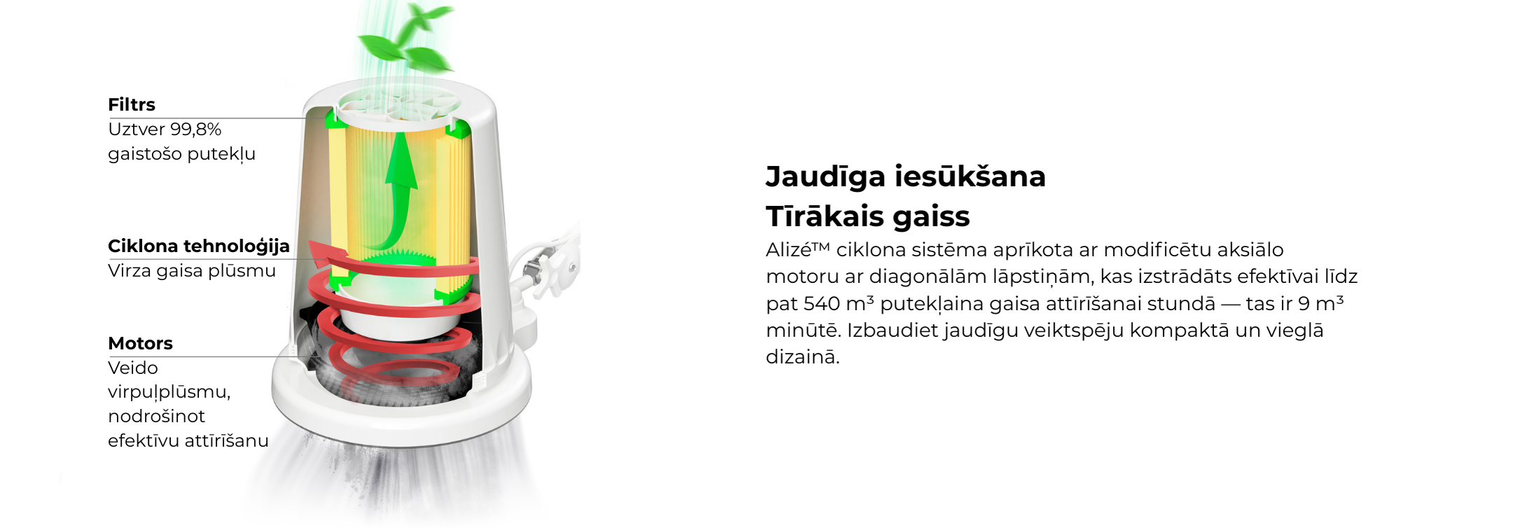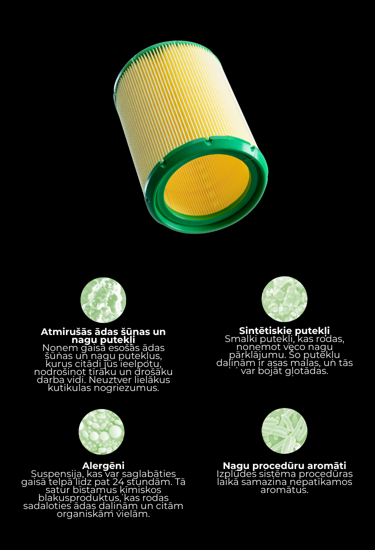 Nodrošiniet optimālu gaisa kvalitāti, regulāri nomainot filtru — tas izstrādāts efektīvai smalko putekļu daļiņu uztveršanai.