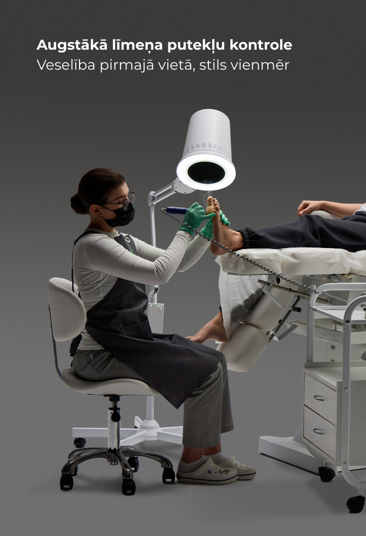 Manikīra un pedikīra procedūras laikā, īpaši ar frēžu uzgaļiem, veidojas milzīgs daudzums smalku putekļu. Galvenais apdraudējums ir tas, ka putekļi nokļūst gļotādās un plaušās. Tas izraisa alerģiju un citas nopietnas, bieži vien hroniskas elpceļu slimības. Tāpēc jūs nevarat strādāt bez gaisa attīrīšanas aprīkojuma. 4BLANC nagu putekļu nosūcējs nesavāc kutikulas atgriezumus, bet pilnībā atbrīvos no jebkura biomateriāla, ko jūs citādi ieelpojat.