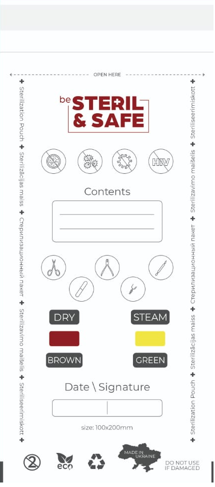 be STERIL&SAFE Karstā gaisa & Autoklāva kombinētie sterilizācijas maisiņi 100x200mm PKW ar indikatoru Balti 100gab.