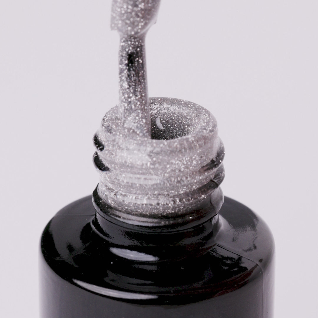Icy Allure is a silver UV gel polish with glitter particles. It creates a strong flash effect – a bright sparkle when exposed to light. The shimmering particles embedded in the polish give an illusion of three-dimensionality. It offers full coverage, allowing you to create a manicure that lasts up to 21 days. Its medium-thick consistency ensures smooth, even application – without streaks or the risk of flooding the cuticles.