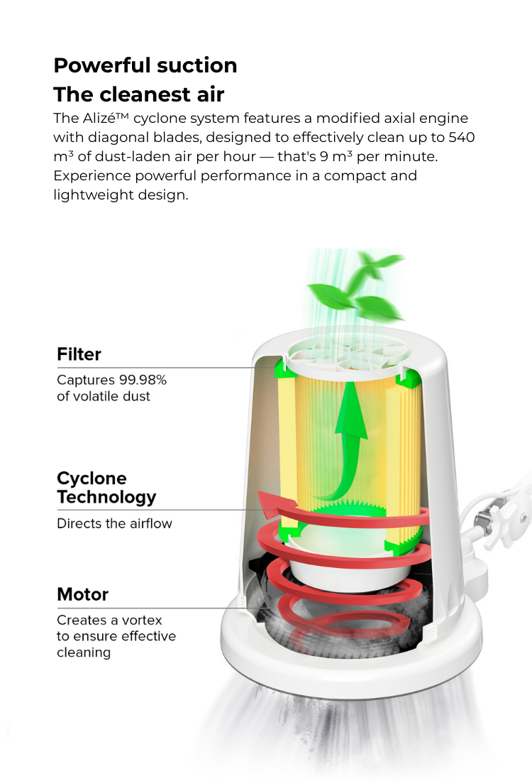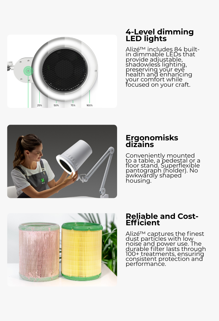 Wide functionality: pedicure, manicure, podiatry, dentistry, and prosthetics. The 4BLANC Alizé dust collector is perfect for professional settings and essential for nail technicians working from home.