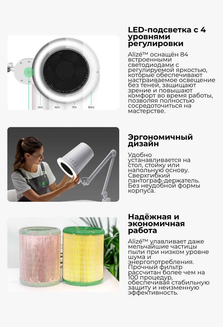 Широкая функциональность: педикюр, маникюр, подология, стоматология и протезирование. Пылесос 4BLANC Alizé идеально подходит для профессиональных настроек и необходим мастерам маникюра, работающим на дому.